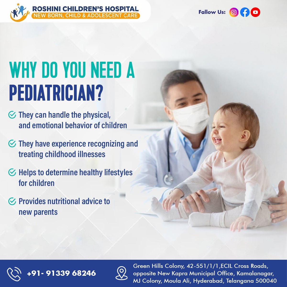 Roshini Children's Hospital in ECIL Cross Roads, Hyderabad, provides comprehensive pediatric, neonatal, and newborn care with 24/7 emergency services-right where families need it most. Our expert team, including board-certified pediatricians and surgeons, delivers outpatient, inpatient, NICU, well-baby clinic, vaccinations, and advanced pediatric surgeries. With modern diagnostic labs, pharmacy, and child-friendly facilities, we ensure every child receives compassionate, specialized medical care. Serving ECIL, Rao Nagar, and beyond, Roshini Childrent Hospital is trusted by parents for safety, expertise, and rapid response-your partner in your child's health and happiness.